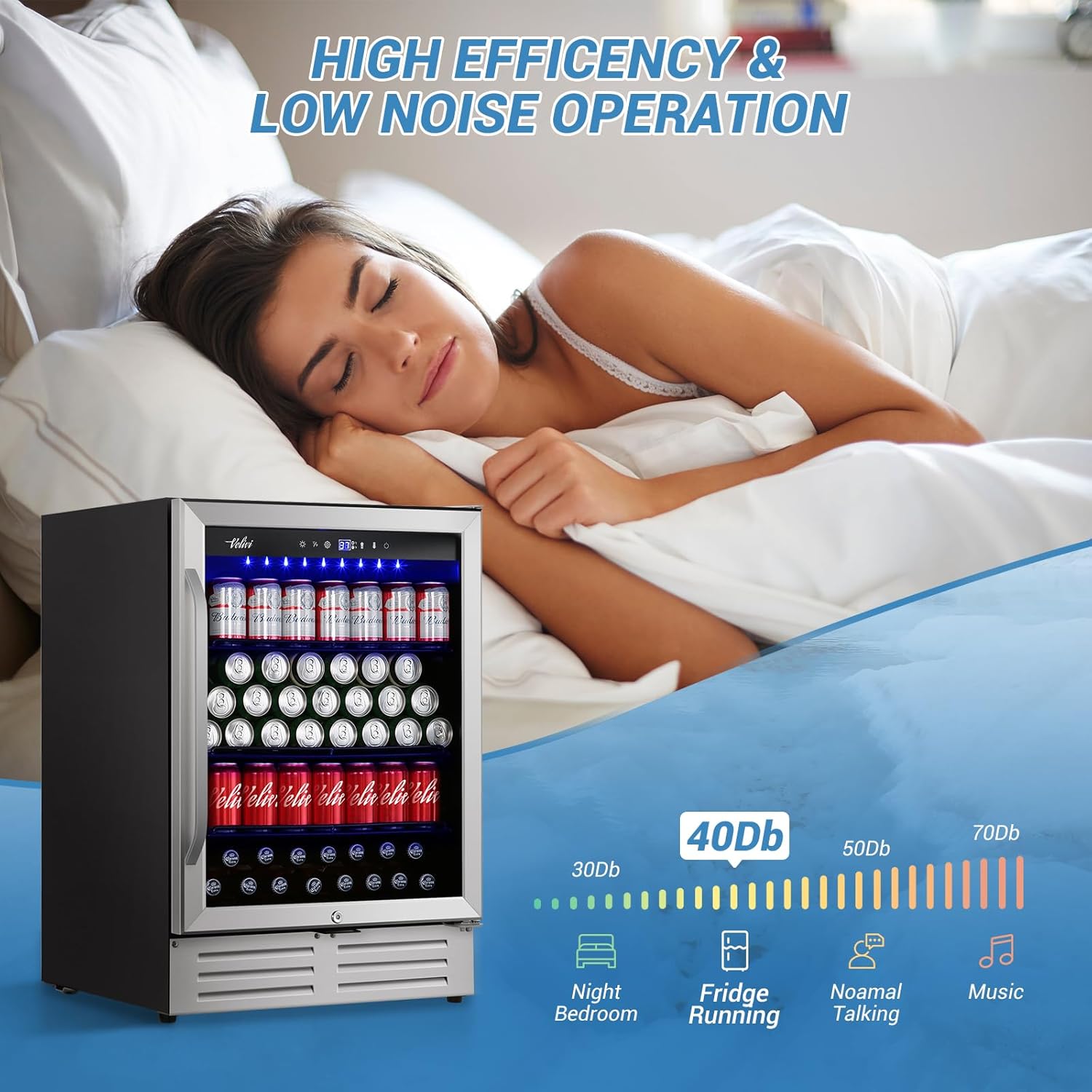 Powerful & Quiet Cooling Compressor - Equipped with a powerful compressor, this beverage cooler operates quietly and efficiently, cooling drinks to as low as 37°F (temperature range: 37-64°F). It features low vibration and noise levels, ensuring a comfortable and peaceful home environment.
