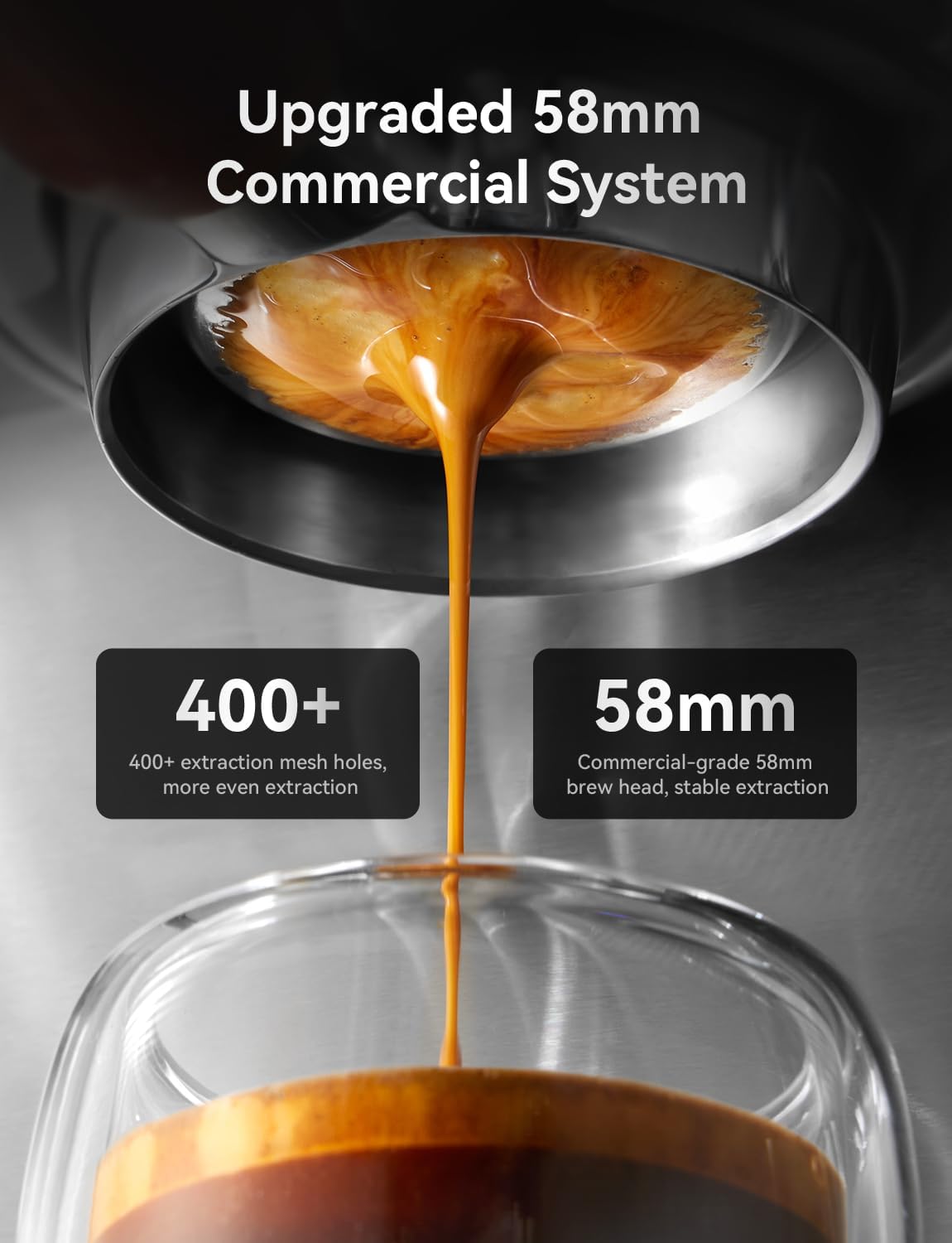 ✅Visible Pressure Gauge & Temperature - Monitored closely by a visible pressure gauge and temperature display, the espresso machines provide precise readings of pressure, temperature and brewing time, empowering you to adjust according to your taste preferences.